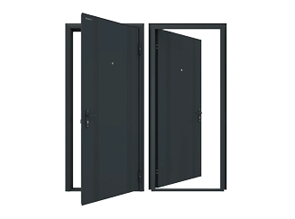 Бюджетный вариант стальной входной двери толщиной 60 мм, полотно которой имеет антивандальное порошковое покрытие с внешней и внутренней стороны в цвете RAL 7016 и декоративный оттиск «симметрия».